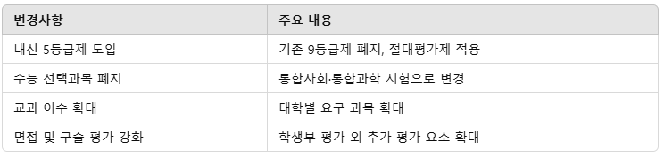 ✅ 내신 5등급제로 변하면서 수능 중요성이 더욱 커짐