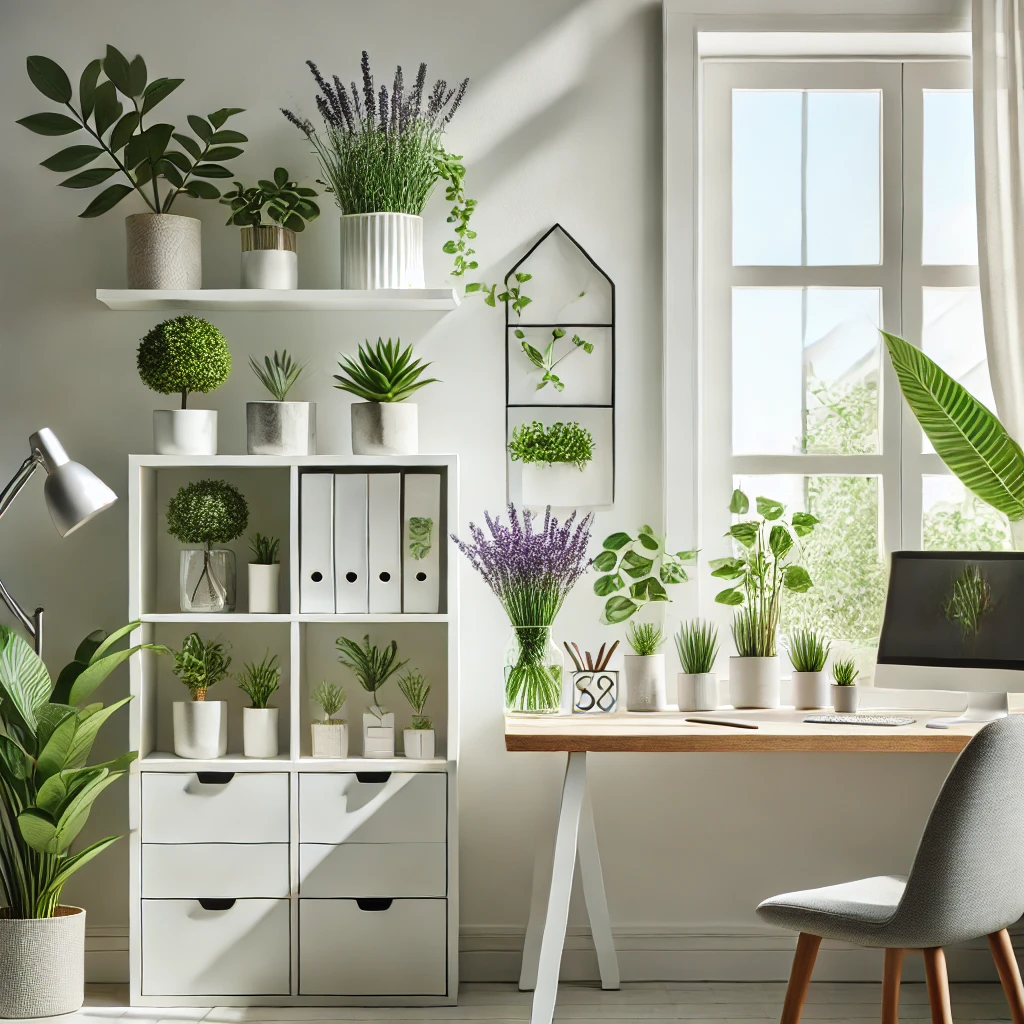 📚 책상/서재 → 작은 화분(라벤더, 장미허브)로 집중력 높이기